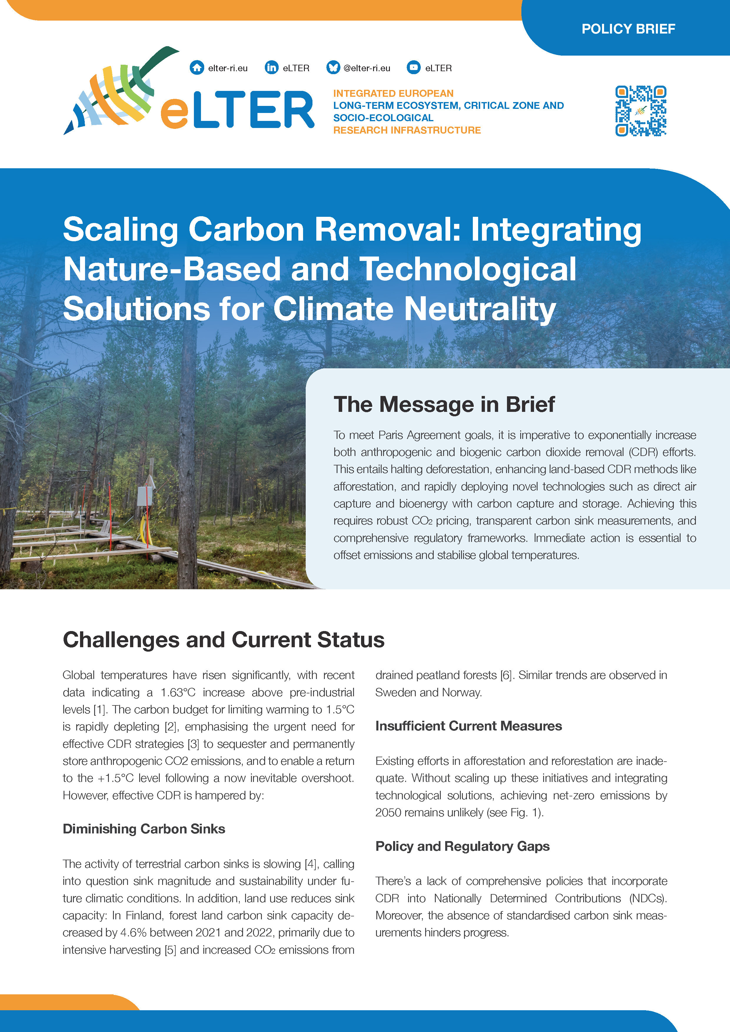 Read eLTER's policy brief: Scaling Carbon Removal: Integrating Nature-Based and Technological Solutions for Climate Neutrality
