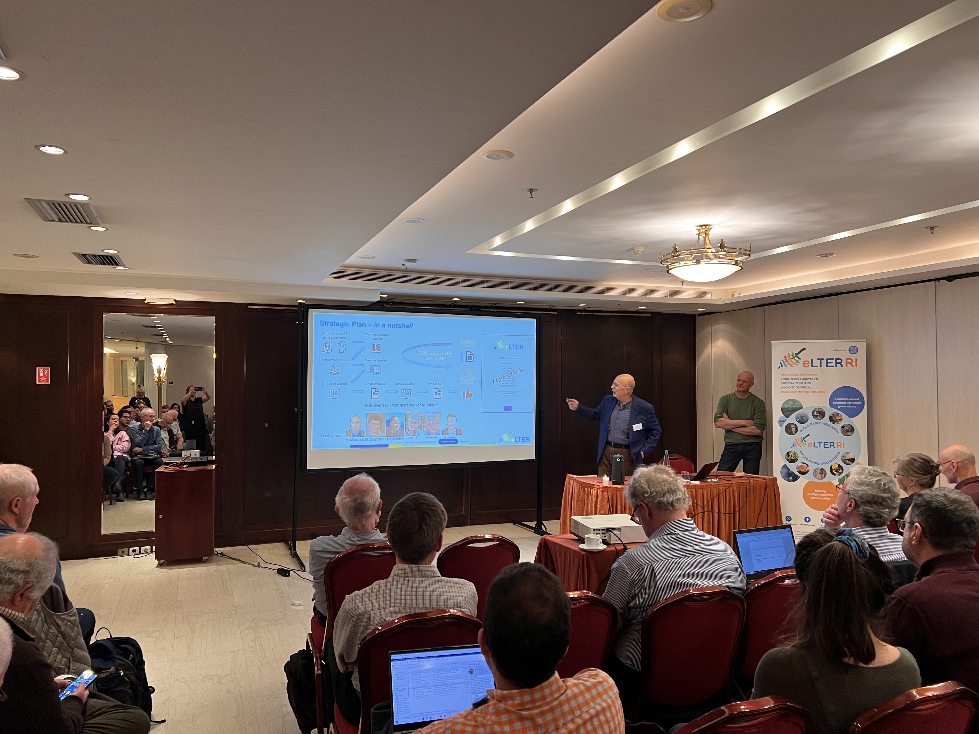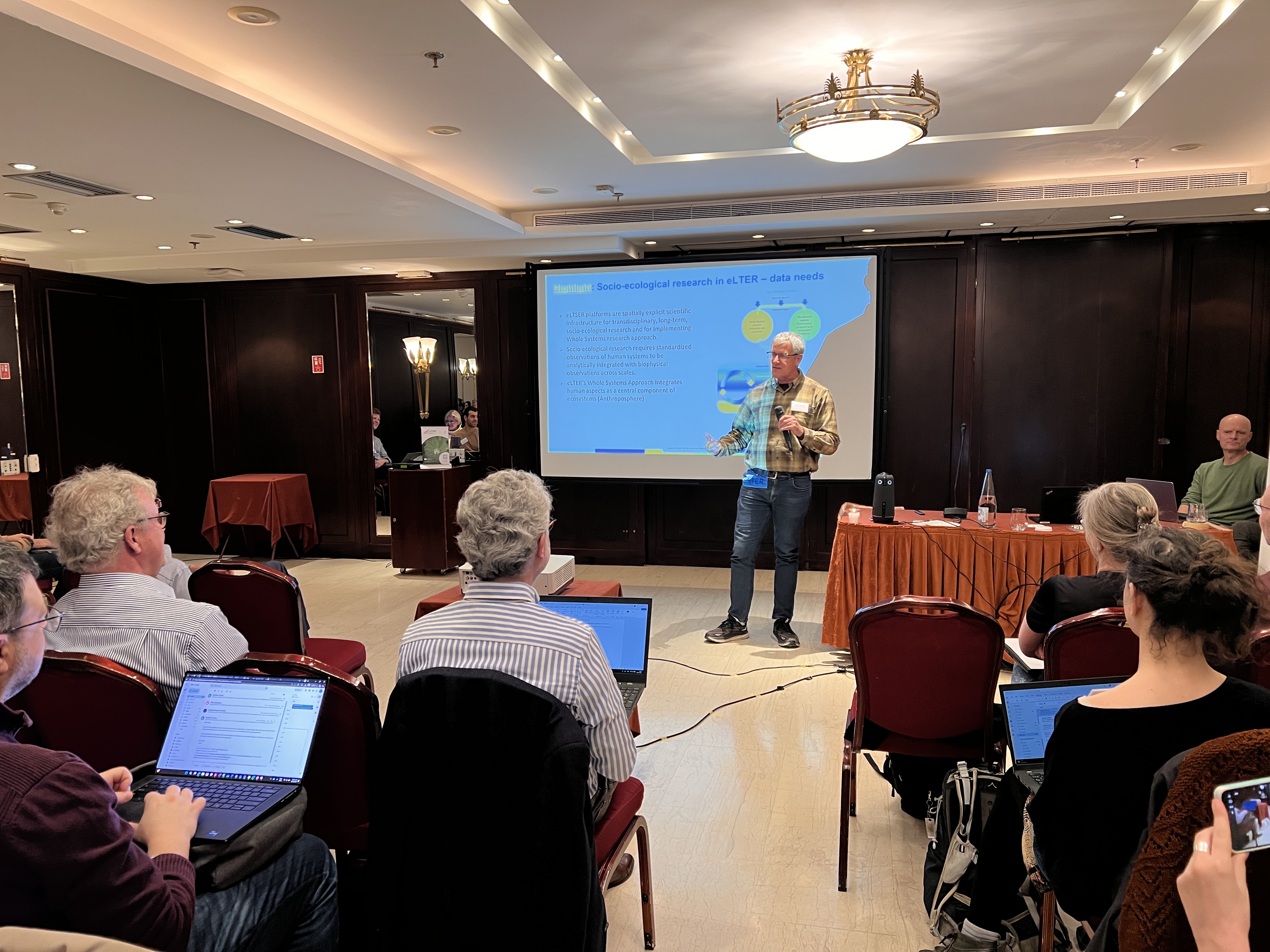 The story was grounded in concrete moments: early conceptual discussions, intensive proposal-building phases, and the collective effort of a distributed community. A special acknowledgement was given to Nikolaos Nikolaidis (the host of the Athens meeting, together with Andreas Panagopoulos), for his long-standing contribution to integrating socio-ecological dimensions into eLTER’s scientific framework.