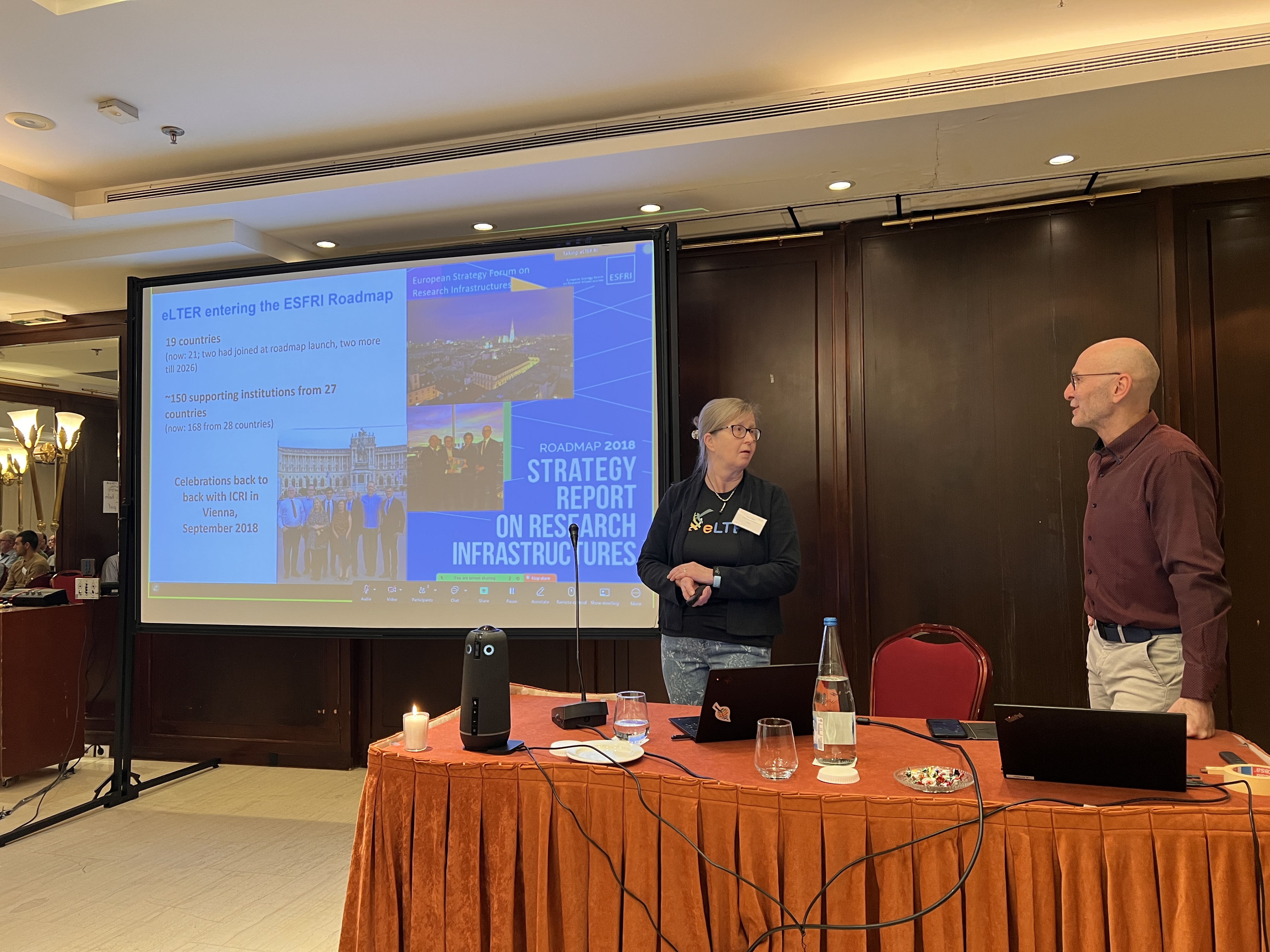 Next followed a joint presentation by eLTER Coordinators Jaana Bäck (University of Helsinki, Finland) and Michael Mirtl (Environment Agency Austria/UFZ, Germany), who traced the long and often complex journey of eLTER. Framed as a narrative of perseverance, collaboration, and shared purpose, their presentation “eLTER RI: Designing, implementing and testing an emerging RI via two flagship projects” highlighted the achievements of eLTER PLUS and eLTER PPP.